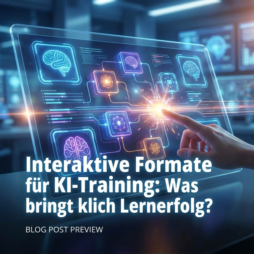 Schreibe einen Kommentar...Interaktives KI Training Lernerfolg – diese drei Worte beschreiben den entscheidenden Unterschied zwischen Schulungen, die verpuffen, und solchen, die Ihr Unternehmen nachhaltig transformieren. Die Realität…