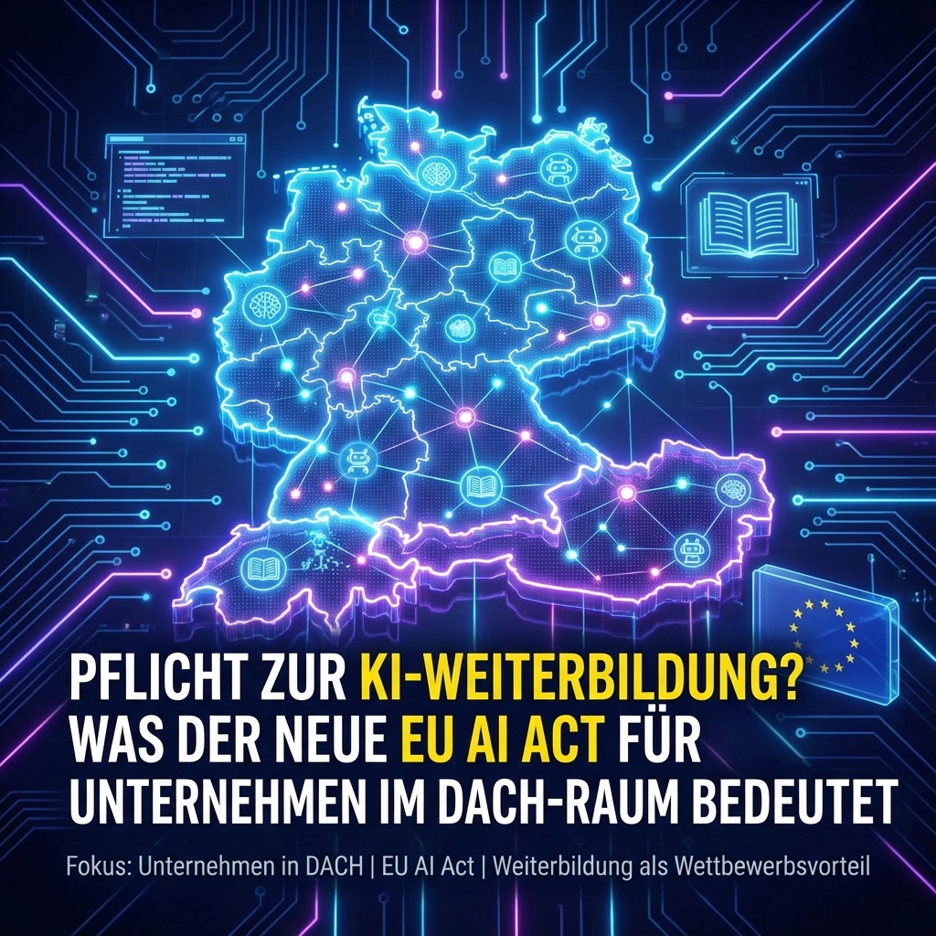 Schreibe einen Kommentar...EU AI Act KI Weiterbildung Pflicht DACH – diese Schlagworte beschäftigen seit Februar 2025 Unternehmen im gesamten deutschsprachigen Raum. Die Realität ist eindeutig: Seit dem…