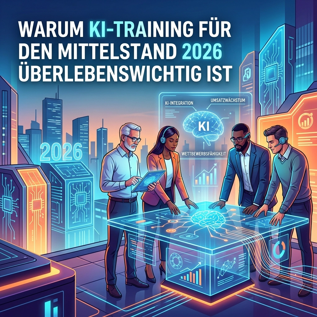 KI-Training für den Mittelstand 2026 ist das zentrale Thema, das über die Zukunft Ihres Unternehmens entscheidet. Wer die Zeichen der Zeit jetzt ignoriert, riskiert nicht nur seine Effizienz, sondern seine gesamte Existenzgrundlage. Ein führender Experte brachte es kürzlich auf den Punkt: „Wer jetzt den Einstieg verpasst, ist in spätestens fünf Jahren weg vom Markt.“ Diese Warnung ist keine bloße Theorie, sondern bittere Realität in einer globalisierten Wirtschaft, die keine technologischen Nachzügler verzeiht.